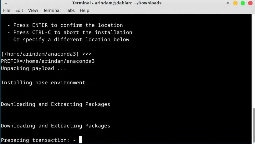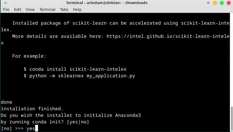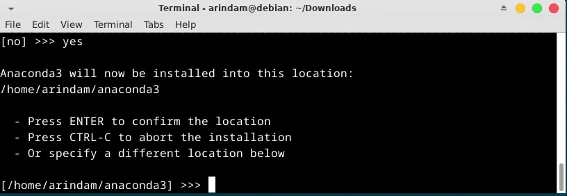 다음 메시지가 표시되면 Anaconda가 Debian 시스템에 설치되어 있다는 의미입니다.