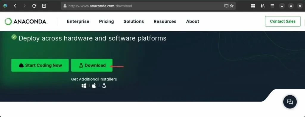 아래 페이지를 방문하여 Anaconda 설치 프로그램 스크립트를 다운로드하세요.